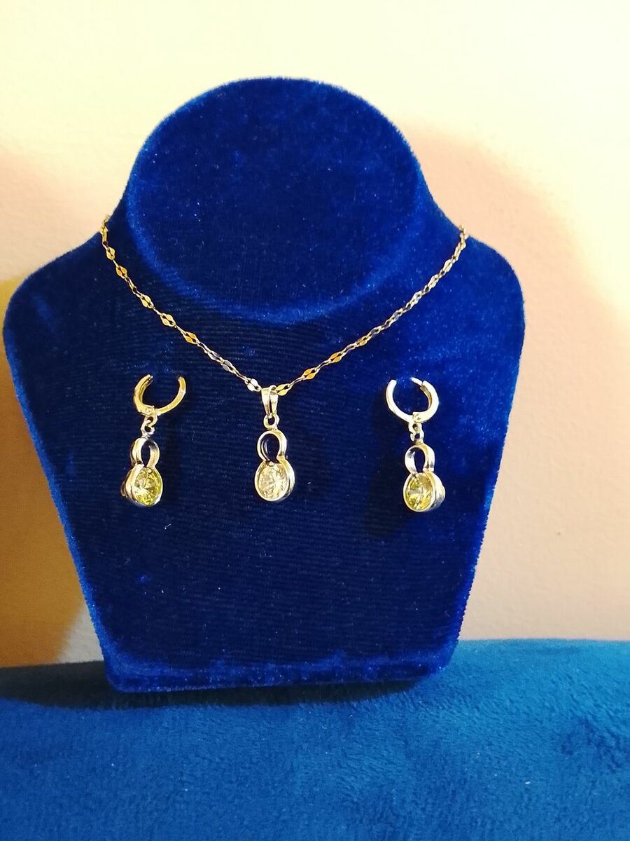 Découvrez cette élégante parure composée d'un collier et de boucles d'oreilles en or, parfaite pour les occasions spéciales. Le design délicat et raffiné ajoute une touche de sophistication à votre tenue.