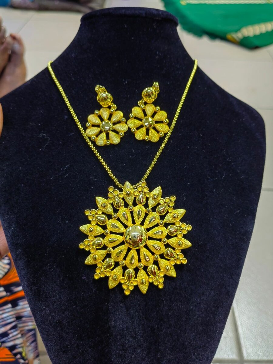 Éclairez votre style avec cette somptueuse parure de collier et boucles d'oreilles dorées. Idéale pour des occasions spéciales, elle allie élégance et glamour. Le design richement détaillé assure un look captivant et inoubliable.
