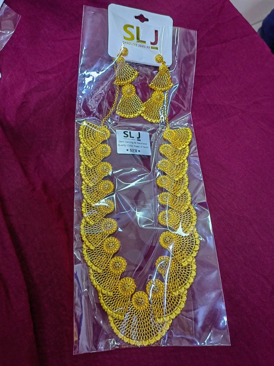 Optez pour cette parure de bijoux dorés pour sublimer vos tenues. Idéal pour les occasions spéciales, cet ensemble ajoute une touche d’élégance et de sophistication. Chaîne élaborée avec soin et boucles d'oreilles assorties pour un look complet et harmonieux. Parfait pour les femmes cherchant à briller lors d'un événement.