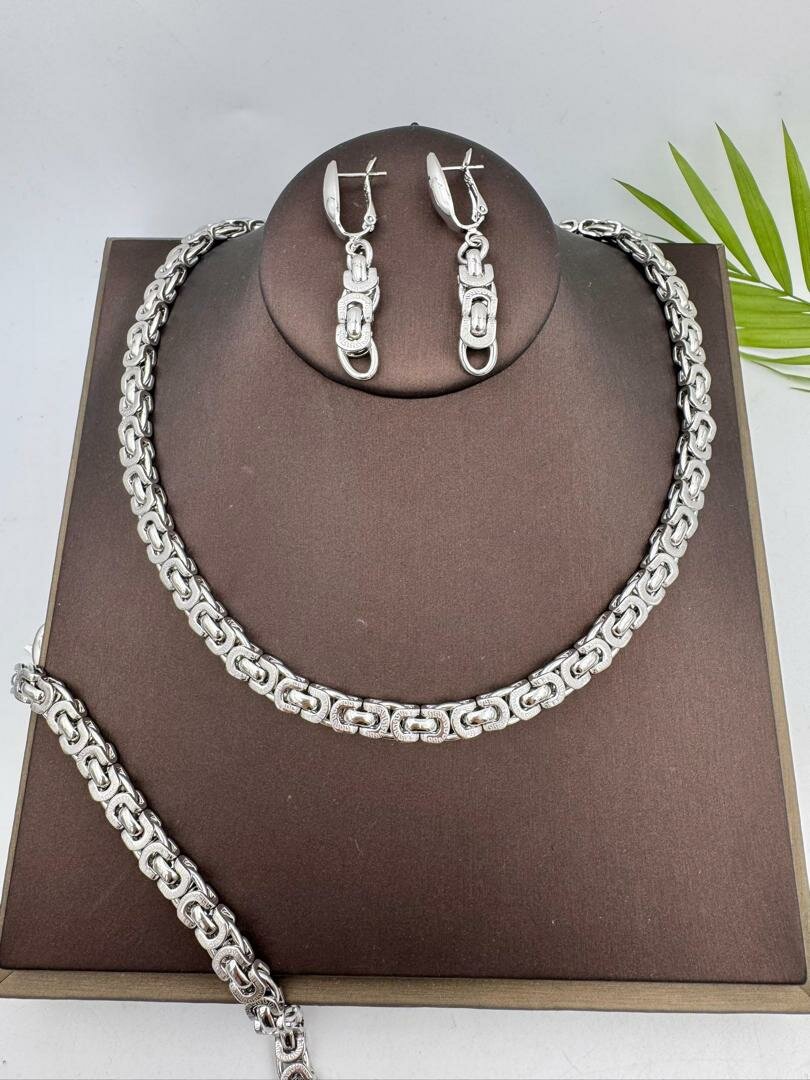 Ensemble élégant de collier et boucles d'oreilles en chaîne argentée. Idéal pour les occasions spéciales ou pour ajouter une touche de sophistication à votre tenue quotidienne.