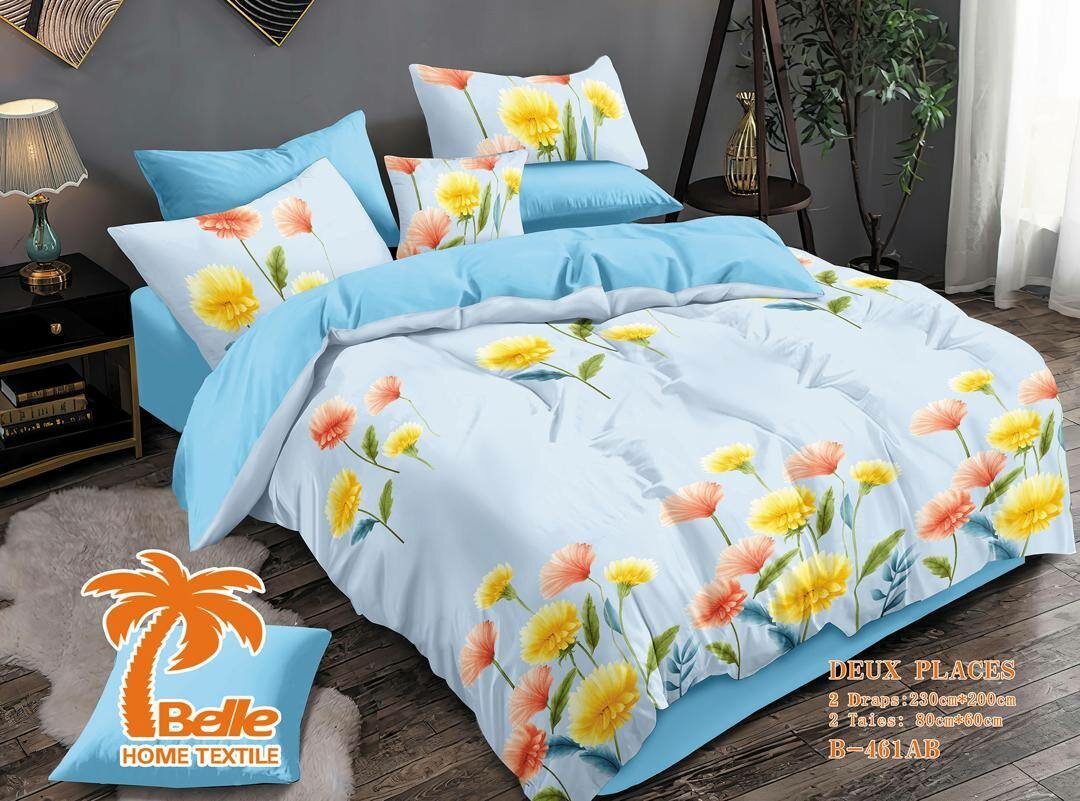 Parure de lit 2 places en coton doux avec motifs de fleurs jaunes. Conception élégante et confortable pour une nuit de sommeil paisible. Facile à entretenir.