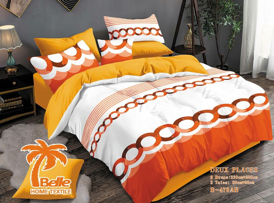 Parure de lit moderne en textile de haute qualité, comprenant une housse de couette et des taies d'oreiller. Design orange et blanc élégant, parfait pour une chambre confortable.