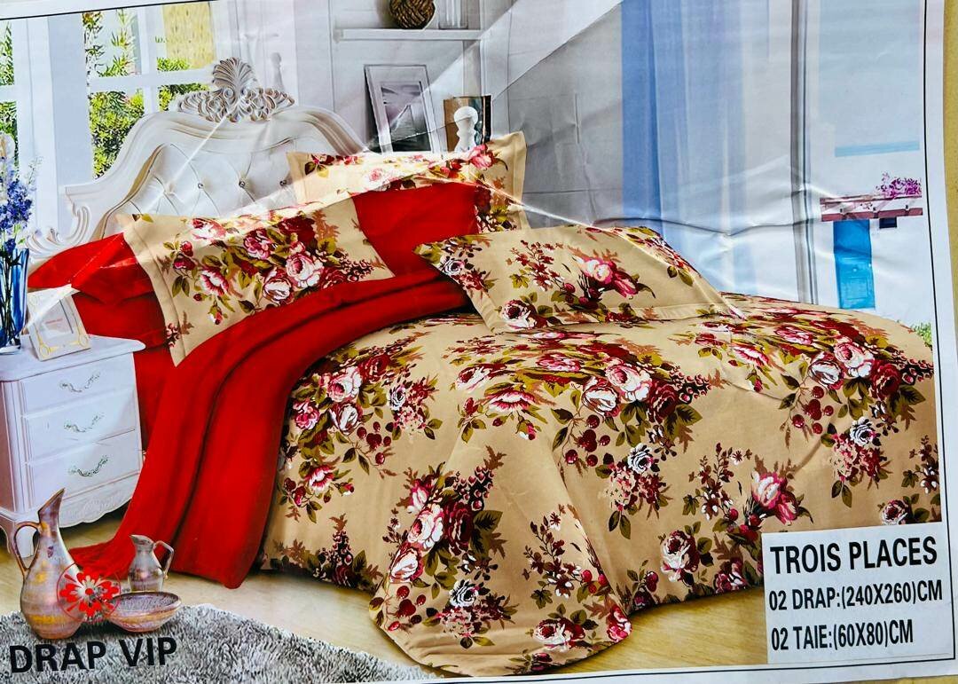 Transformez votre chambre avec cette élégante parure de lit 3 places aux motifs floraux vibrants. Fabriquée à partir de matériaux de haute qualité, elle offre un confort suprême et une ambiance luxueuse. Dimensions du drap : 240x260 cm, taies : 60x80 cm. Parfaite pour celles et ceux qui souhaitent ajouter une touche de romantisme à leur espace de sommeil.