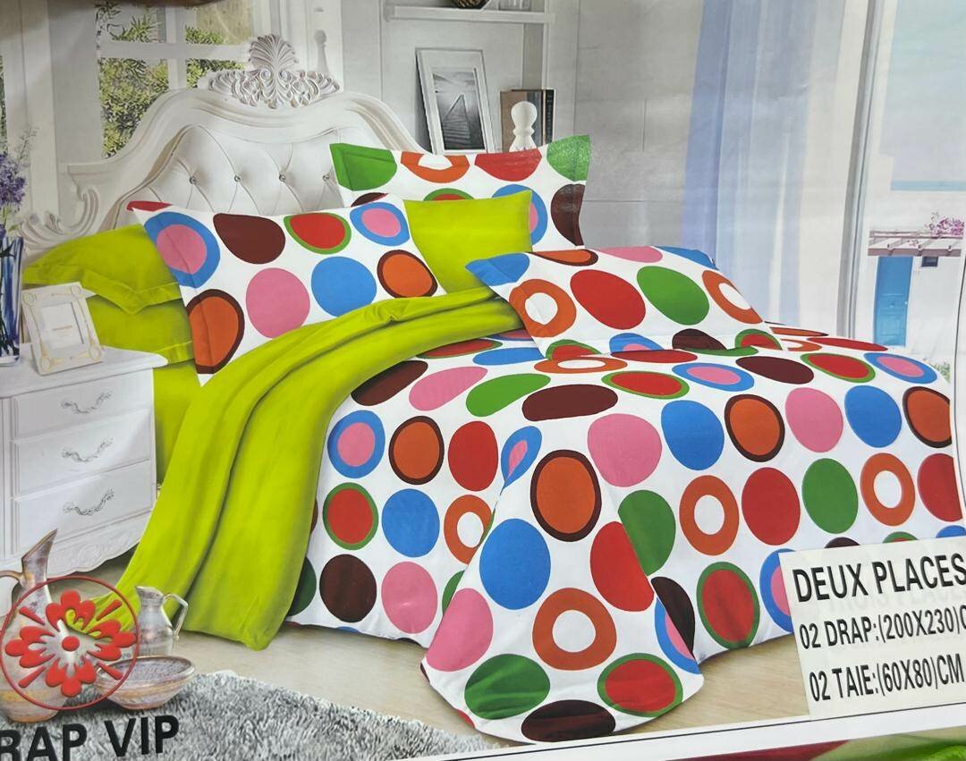 Ajoutez une touche de vivacité à votre chambre avec cette parure de lit colorée à motifs de cercles. Fabriquée en tissu doux, elle inclut un drap 120x230 cm et deux taies d'oreiller 60x80 cm. Parfait pour illuminer n'importe quelle chambre à coucher.