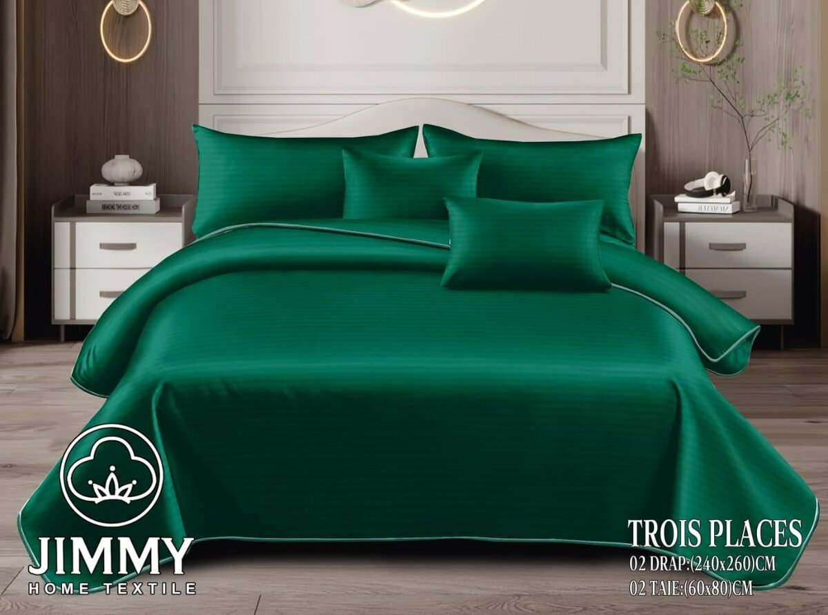 Transformez votre chambre avec cette magnifique parure de lit émeraude. Conçue par Jimmy Home Textile, elle comprend deux draps et deux taies d'oreiller. Elle est idéale pour un lit trois places. Fabriquée avec soin, elle ajoutera une touche de luxe à votre intérieur. Un choix parfait pour ceux qui cherchent à allier confort et élégance dans leur chambre!