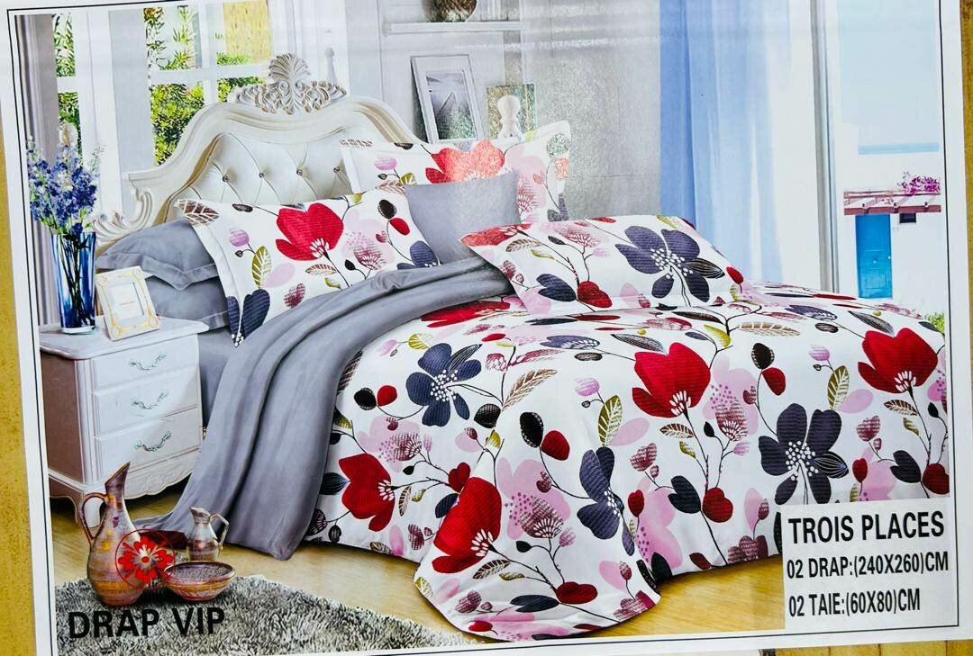 Transformez votre chambre avec cette magnifique parure de lit trois places, ornée d'un élégant motif floral. Comprend deux draps et deux taies, parfaits pour un sommeil paisible.