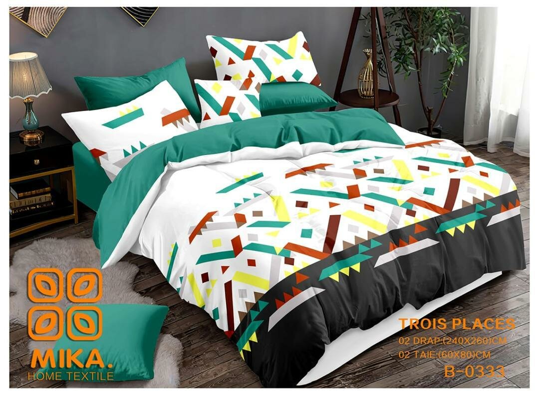 Transformez votre chambre avec la parure de lit Mika, alliant motifs géométriques vibrants et confort. Fabriquée en matériaux de haute qualité, elle est idéale pour un lit double. Ajoutez une touche moderne et colorée à votre espace de repos.