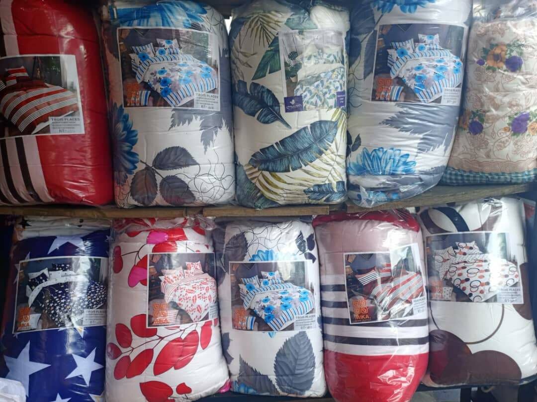Parure de lit imprimée multicolore pour une chambre confortable. Douce et résistante, cette parure de lit est idéale pour une décoration intérieure élégante. Disponible en plusieurs motifs et couleurs.
