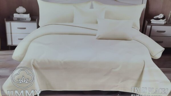 Parure de lit élégante en coton jaune avec dentelle. Confortable et raffinée, idéale pour une chambre cosy. 6 pièces : 1 housse de couette, 2 taies d'oreiller, 2 taies de traversin, 1 drap plat.