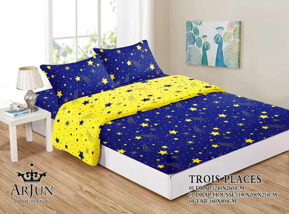 Ajoutez une touche de magie à votre chambre avec cette parure de lit aux motifs étoiles. Fabriquée en textile de haute qualité, elle est douce et confortable. Comprend un drap, une housse de couette et taies d'oreiller. Design vibrant idéal pour illuminer votre espace de sommeil et convenir à toutes les saisons.