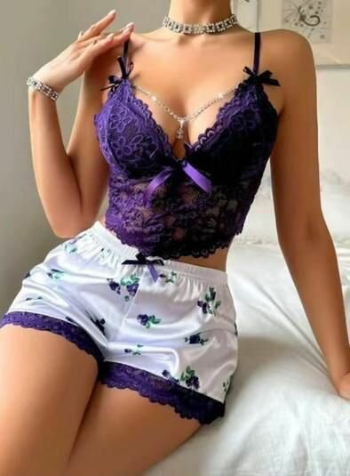 Ensemble de lingerie en dentelle violette