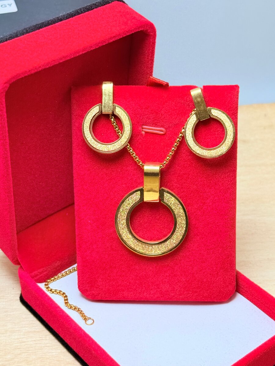 Optez pour cette parure dorée en forme de cercle, idéale pour sublimer vos tenues. Parfaite pour les occasions spéciales ou pour égayer votre quotidien, cette parure se distingue par son style élégant et intemporel. Un choix brillant pour toutes les fashionistas!