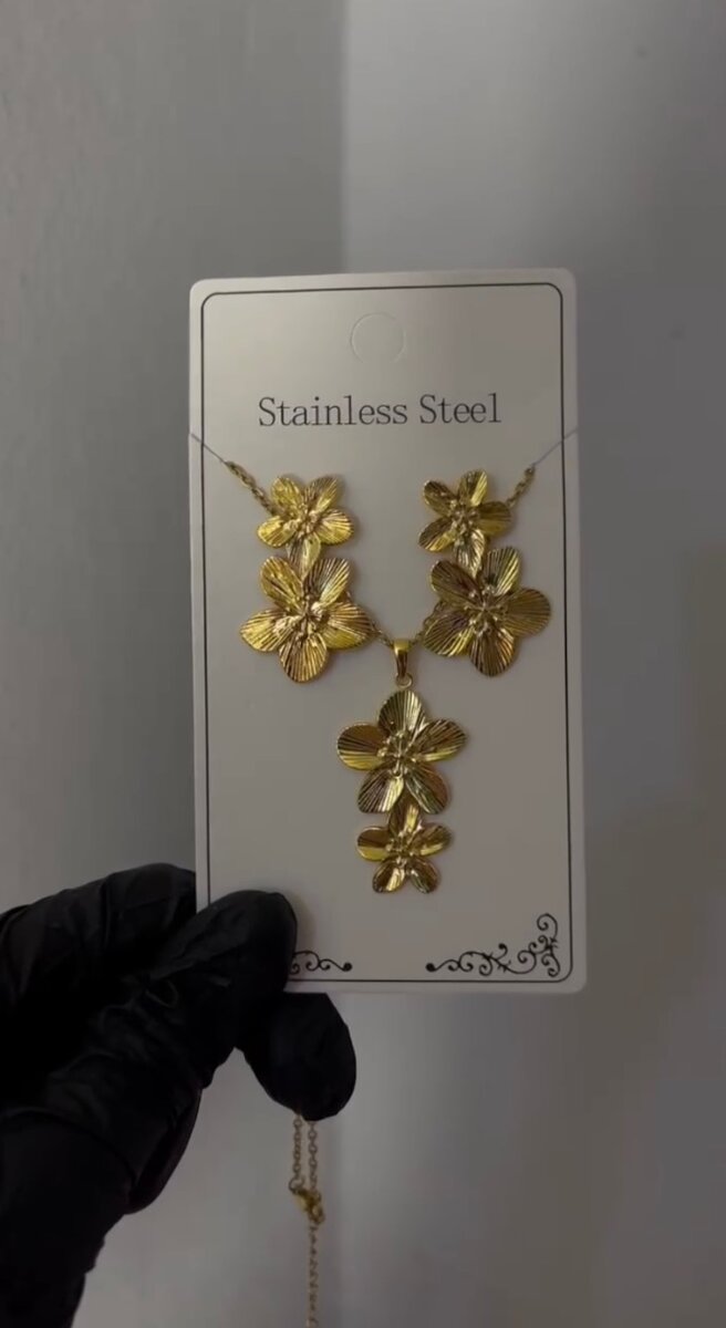 Découvrez notre élégante parure en acier inoxydable, alliant durabilité et design sophistiqué. Avec un motif floral doré et un design épuré, elle est idéale pour sublimer toutes vos tenues. Parfait pour un cadeau ou une occasion spéciale, cette parure ajoutera une touche de raffinement à votre collection de bijoux. Ne ternit jamais et reste éclatante pour longtemps.