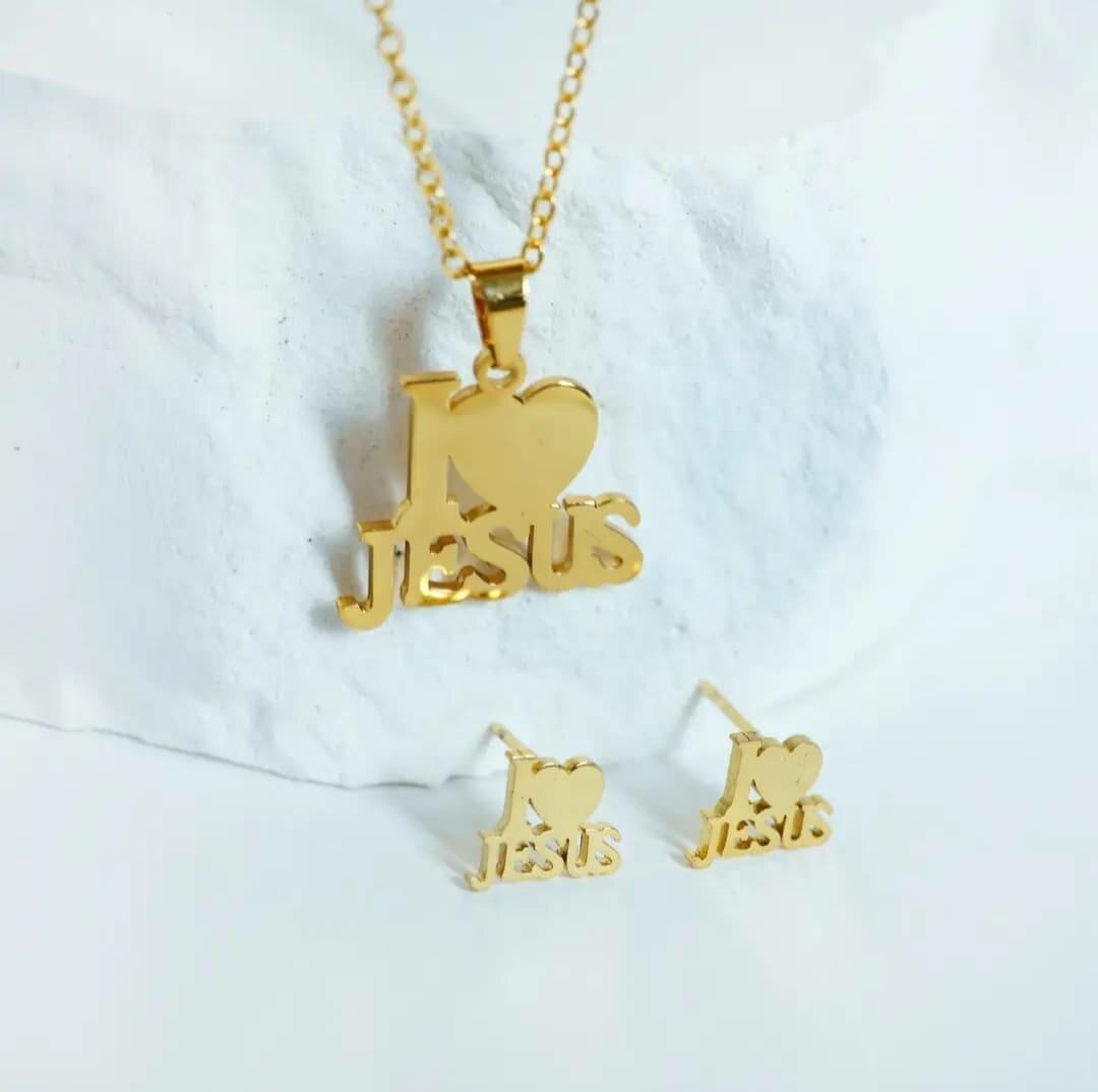 Affirme ta foi avec élégance Collier + boucles doreilles I ️ JESUS Disponible en or & argent Chic Moderne Spirituel Parfait pour offrir ou se faire plaisir À partir de 3.000 FCFA 2 a 5.000f 1 a 5.000f avec coffret N.B: inoxydable