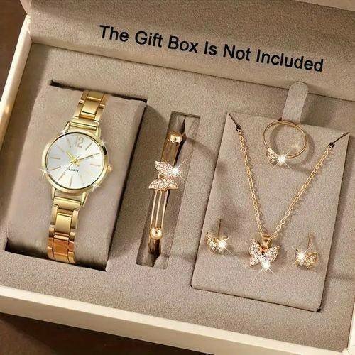 Découvrez cette élégante parure papillon dorée, composée d'un collier, boucles d'oreilles, bague et bracelet étincelants. Idéale pour sublimer votre tenue avec une touche chic et féminine. Cadeau parfait pour toutes occasions.