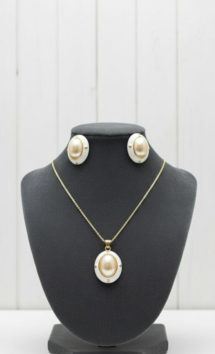 Élégante parure avec pendentif et boucles d'oreilles en perles. Idéale pour ajouter une touche de raffinement à vos tenues. Cadeau parfait pour un être cher.