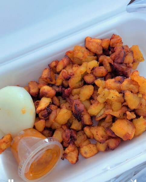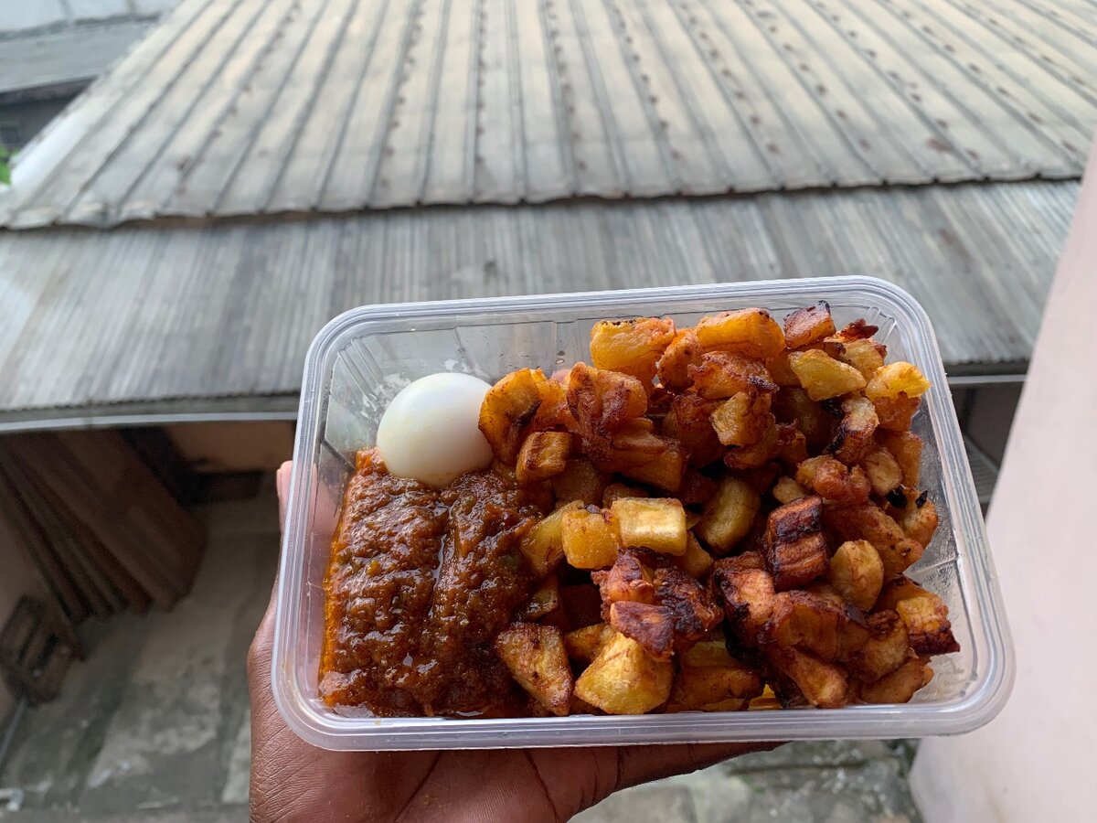 Savourez notre délicieux combo de patates douces et plantains frits, accompagné d'un œuf et d'une sauce épicée. Idéal pour un repas rapide et savoureux, parfait pour toute occasion.