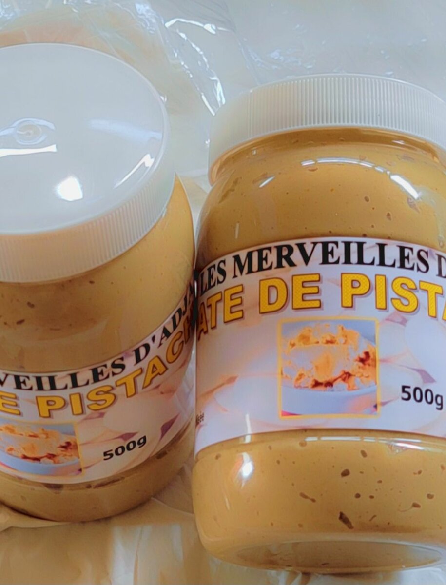 Délicieuse pâte de pistache naturelle, parfaite pour pâtisseries et desserts. Saveur authentique et crémeuse, idéale pour les amateurs de pistache. Poids net : 500g.