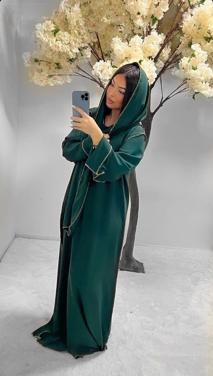 Magnifique peignoir vert pour femme, confortable et élégant. Idéal après la douche ou pour se détendre à la maison.