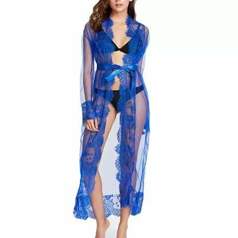 Découvrez notre élégant peignoir long en dentelle bleue transparente. Parfait pour ajouter une touche sophistiquée à votre lingerie. Idéal pour une soirée romantique ou un moment de détente. Confectionné avec des matériaux de haute qualité pour garantir confort et style.