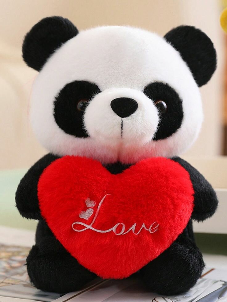 Cadeau idéal pour la Saint-Valentin, cette peluche panda douce et câline tient un cœur rouge avec 'Love' brodé. Parfaite pour exprimer votre affection.
