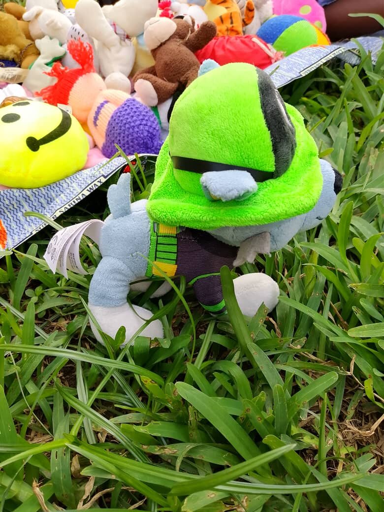 Peluche de Rocky de la Pat'Patrouille, chien vert avec casquette et outils. Doux et amusant pour les enfants.