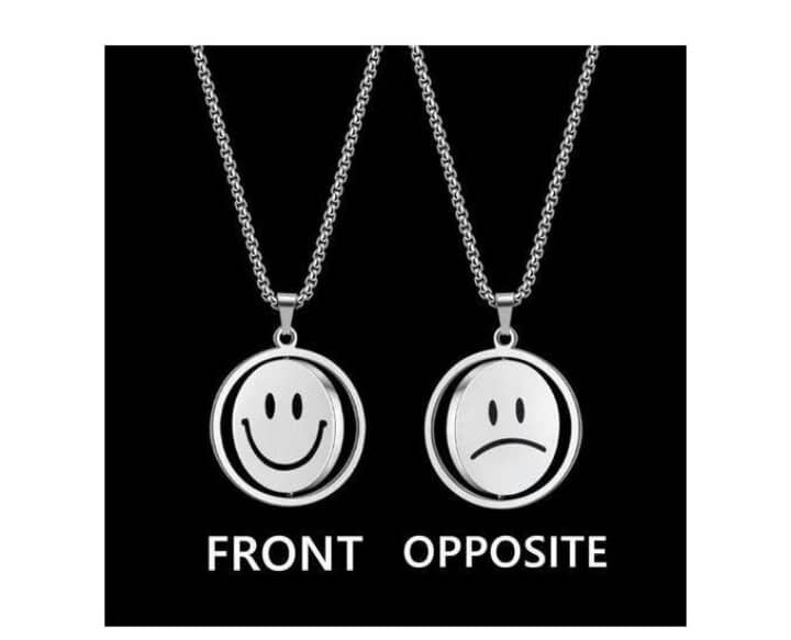 Découvrez notre pendentif unique avec sourire et moue réversible. Parfait pour exprimer votre humeur. Fabriqué en acier inoxydable, idéal pour l'usage quotidien. Convient à tous, un choix original pour un cadeau ou pour vous-même!