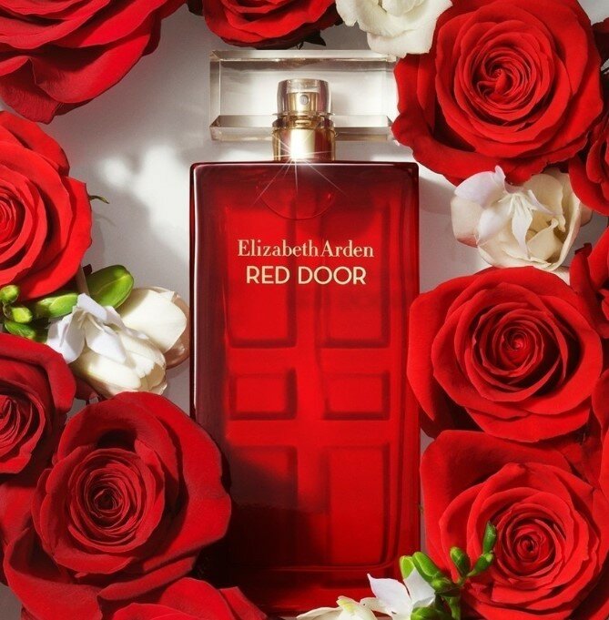 Red Door is a classic, elegant signature fragrance, a symbol of glamour and luxury, inspired by the famous Red Door Spa center. It opens with ylang-ylang and red rose, at its heart; orchid, jasmine, lily-of-the valley, orange blossom, wild violet and freesia. The base is composed of honey, sandalwood and vetiver.