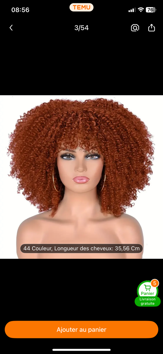 Transformez votre look avec notre perruque afro bouclée, idéale pour un style audacieux et volumineux. Disponible en plusieurs couleurs vibrantes. Fabriquée à partir de matériaux de haute qualité pour un confort et un ajustement parfaits. Idéale pour les occasions spéciales ou l'usage quotidien. Un choix parfait pour celles qui souhaitent exprimer leur individualité.