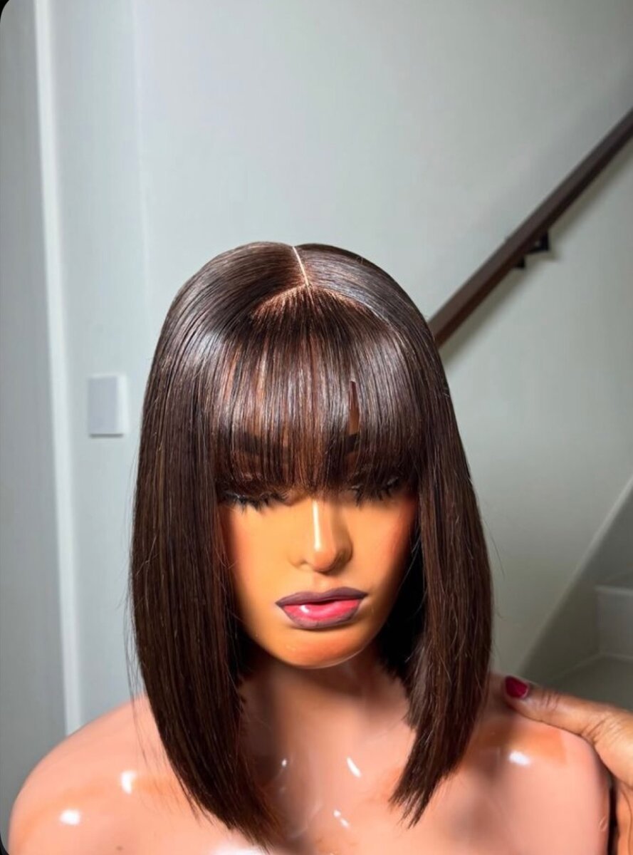 Découvrez cette élégante perruque bob avec frange, idéale pour un look chic et tendance ! Conçue pour s'adapter à toutes les occasions, elle est facile à coiffer et parfaite pour un relooking rapide. Soyez la star de votre journée avec ce style intemporel !