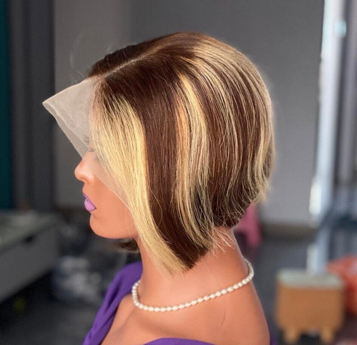 Perruque Bob en Dentelle Colorée