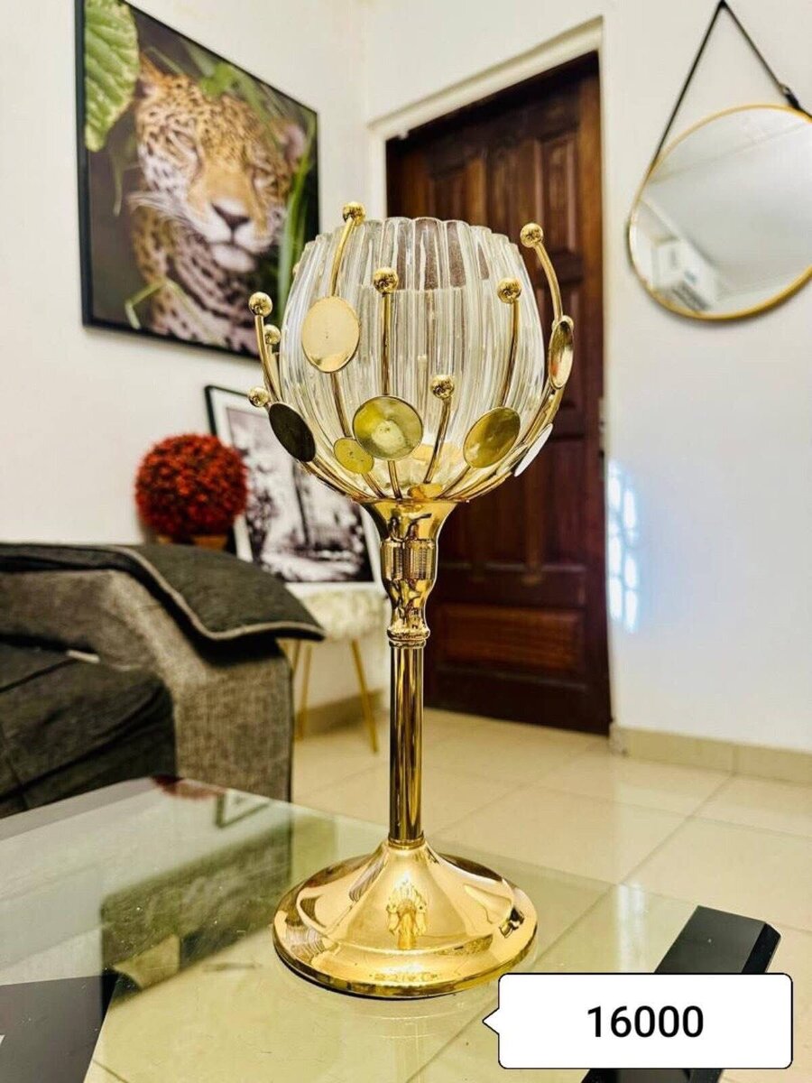 Ce magnifique photophore en verre et métal doré ajoute une touche d'élégance à toute pièce. Idéal pour les soirées romantiques ou les moments de détente, il diffuse une lumière douce et apaisante. Parfait pour le salon ou la chambre.