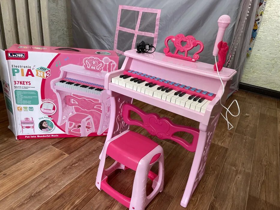 Piano électronique pour enfants, idéal pour éveiller leur passion musicale. Portable et coloré, il inclut un micro pour inspirer de véritables performances. Parfait pour les jeunes artistes.