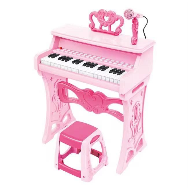 Jouet piano rose avec microphone pour enfants. Stimule la créativité musicale avec des sons réalistes et un design élégant. Idéal pour développer les talents musicaux à la maison.