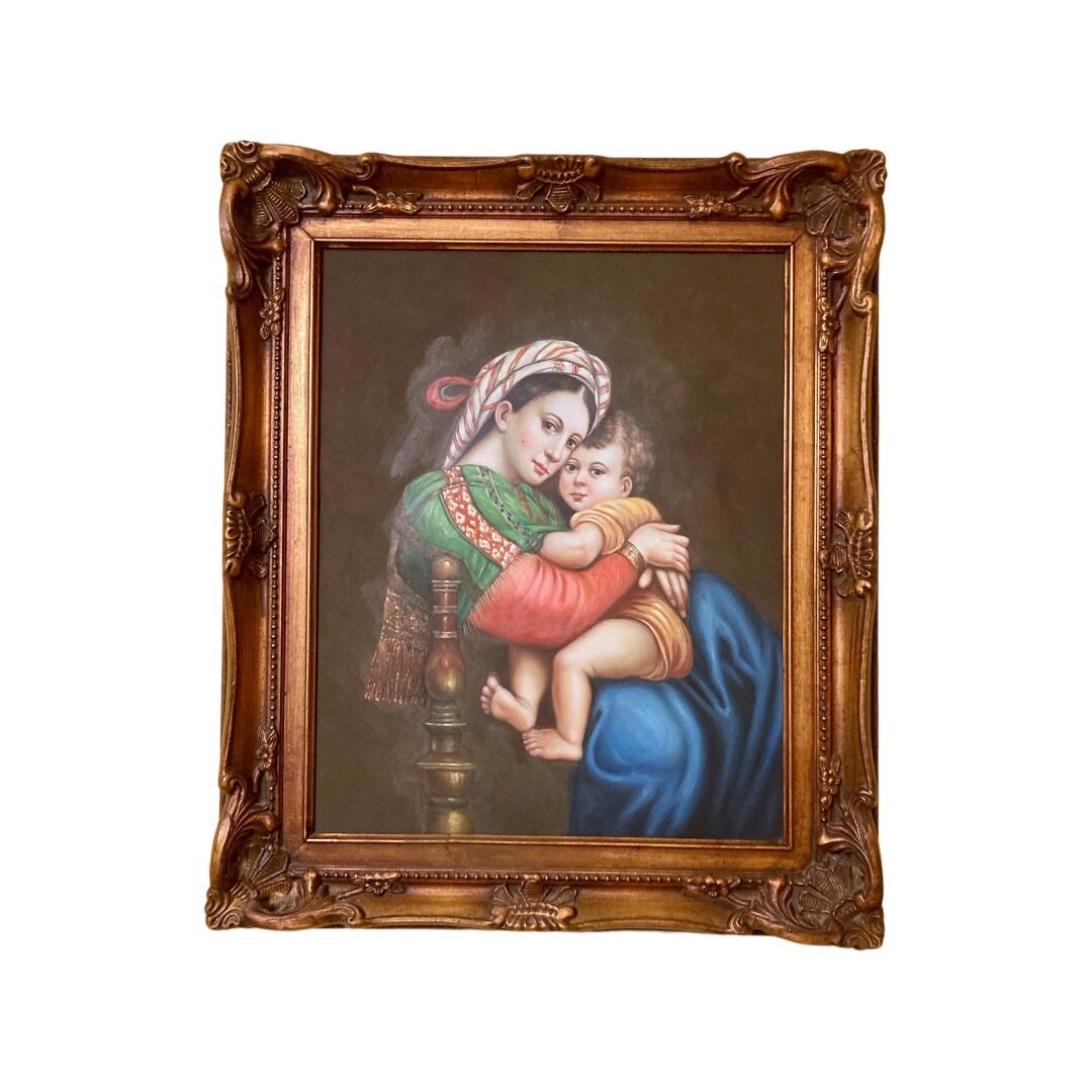 Выставочная картина (Стамбул) турецкого художника "Мадонна" с младенцем" . Размеры - высота-66 см, ширина-56 см