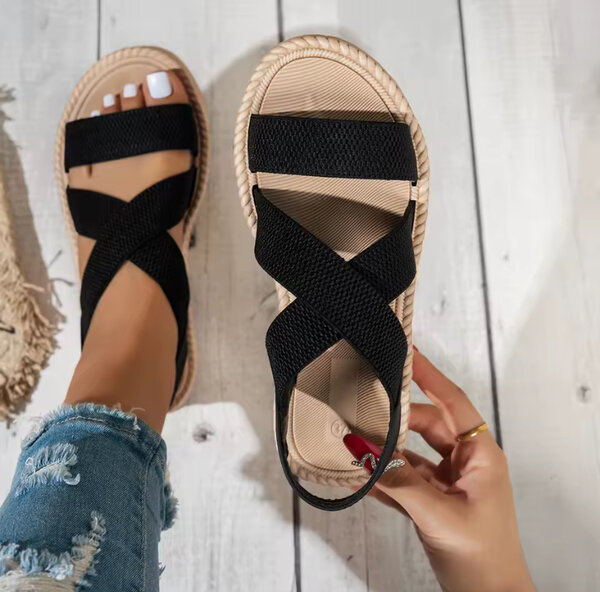 Sandales plates noires pour femmes