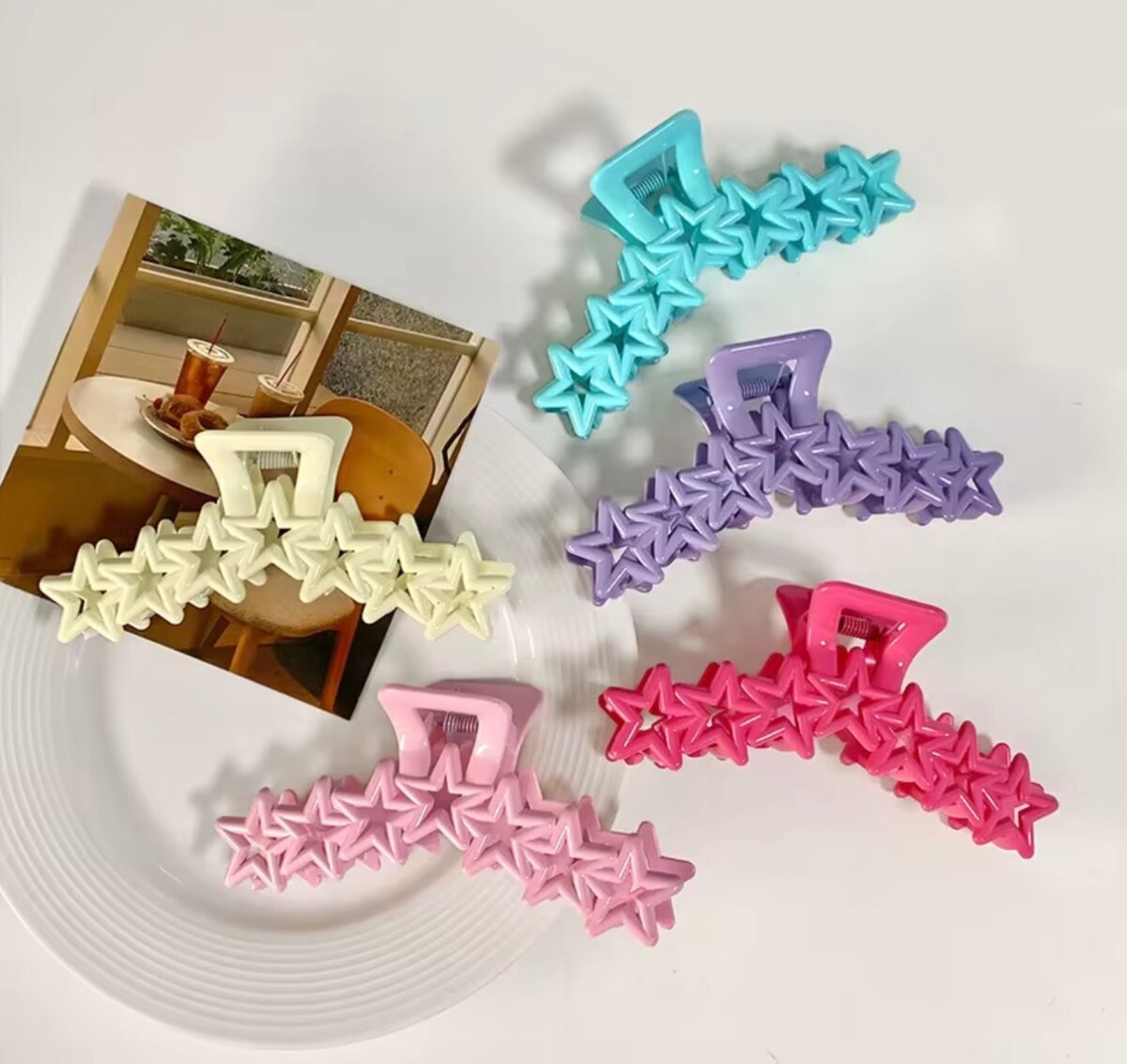 Découvrez nos pinces à cheveux décorées de délicates étoiles, parfaites pour ajouter une touche de fantaisie à votre coiffure. Disponibles en plusieurs couleurs vives, elles conviennent à toutes les occasions, que ce soit pour une sortie quotidienne ou un événement spécial. Leur design robuste assure une tenue parfaite et confortable toute la journée. Idéal pour les femmes et les jeunes filles.