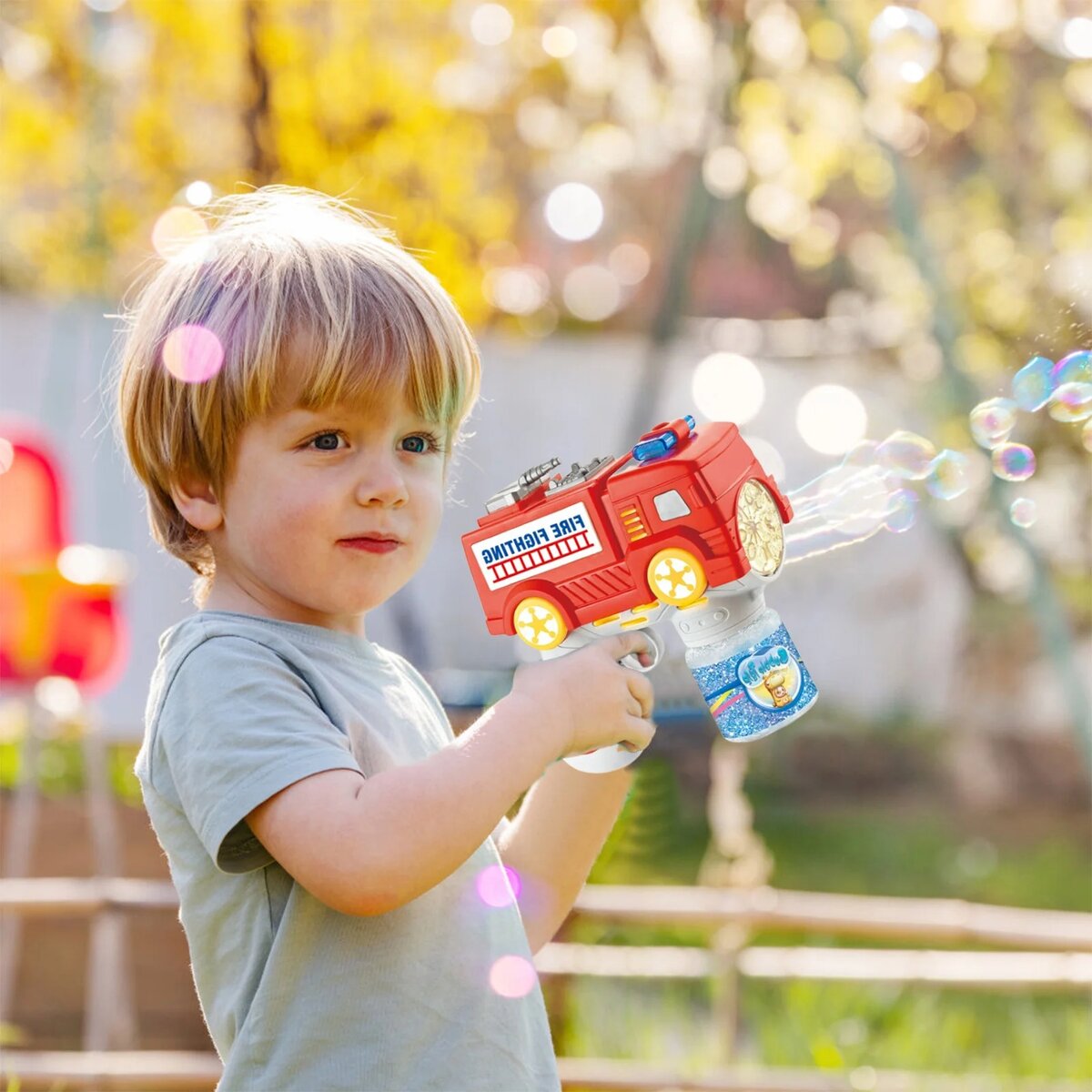 Amusez-vous avec ce pistolet à bulles en forme de voiture de police et de camion de pompiers. Parfait pour les jeux en plein air ! Facile à utiliser pour les enfants, il génère des milliers de bulles pour un merveilleux moment de plaisir.