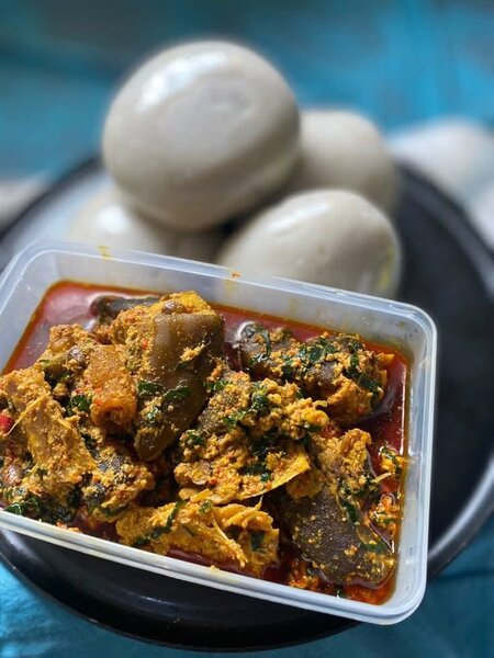 Découvrez notre plat authentique de placali accompagné d'une sauce tomate épicée du kplala et du gombo