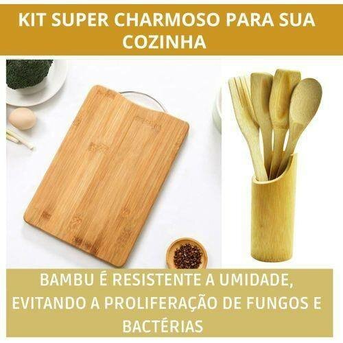 Planche à découper en bambou robuste avec poignée en acier et ensemble d'ustensiles de cuisine. Résistant à l'humidité, idéal pour la préparation des repas.