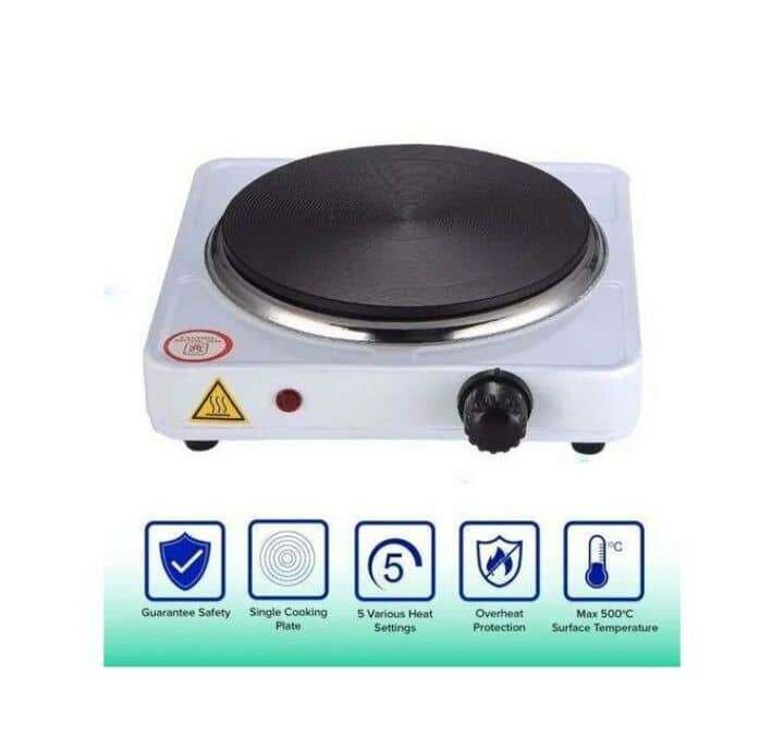 Plaque de cuisson électrique compacte et sécurisée avec 5 réglages de chaleur. Idéale pour la cuisine à domicile ou en déplacement.
