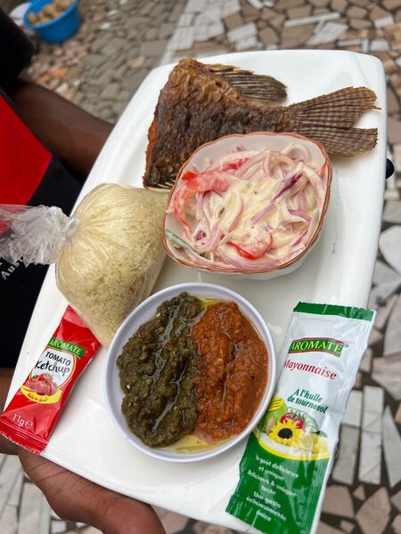 Découvrez notre délicieux plat de Dokounou avec une sauce tomate et un PIMENT Noir +poisson frit et Pklo OU Alevins. Idéal pour un repas authentique et savoureux. Parfait pour partager en famille ou entre amis. Savourez le goût et l´authenticité