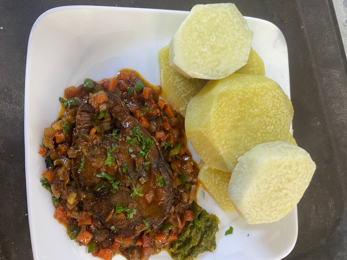 Savourez ce délicieux plat de poisson accompagné de légumes variés et de tranches de tubercules tendres. Parfait pour un dîner équilibré et savoureux.