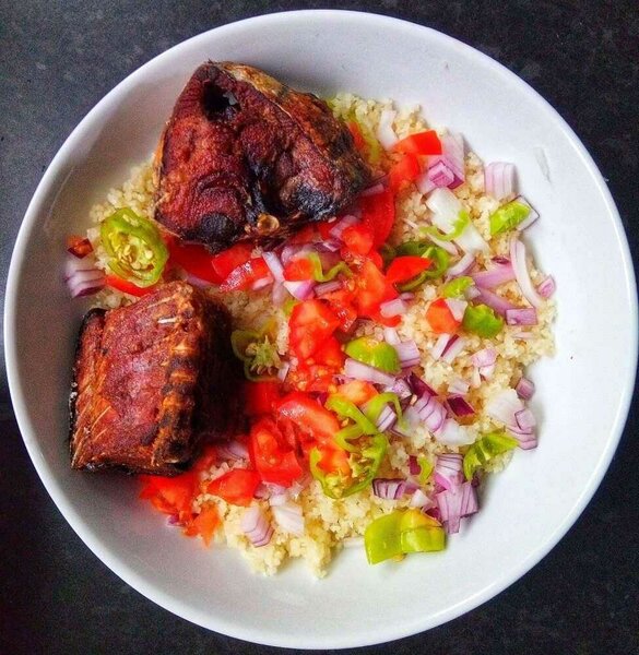 Plat de couscous et poisson frit