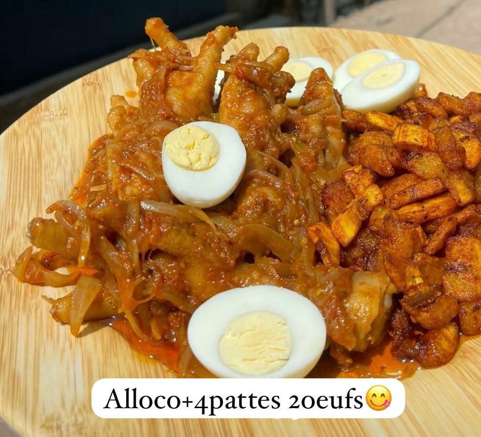 Savourez notre délicieux plat de poulet sauté accompagné d'alloco ou Attieke et d'œufs durs. Parfait pour un repas savoureux et nutritif.
