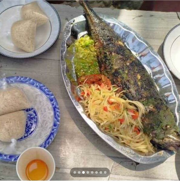 Découvrez notre délicieux plat de poisson grillé accompagné de semoule savoureuse, de bananes plantains croquantes, d'oignons frais et d'une sauce piquante. Parfait pour un repas familial ou un dîner entre amis. Profitez d'une expérience culinaire authentique qui saura ravir vos papilles.
