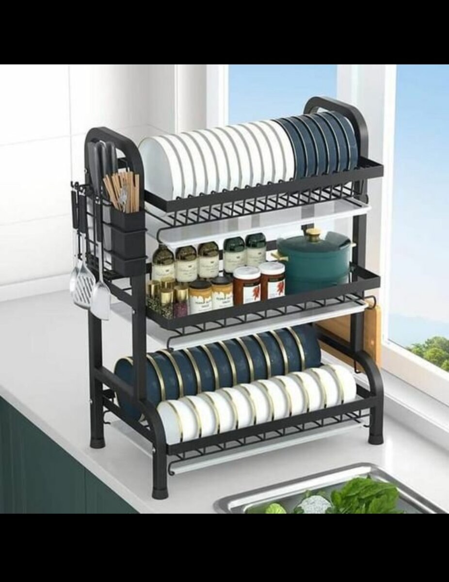 3 Layer Kitchen Tableware,Drain Rack, Stand, & Bowls Dishes.