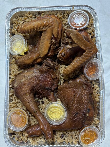 Savourez le Tchep mixte pour 3, avec poulet, mouton et boulettes. Idéal pour un repas convivial.