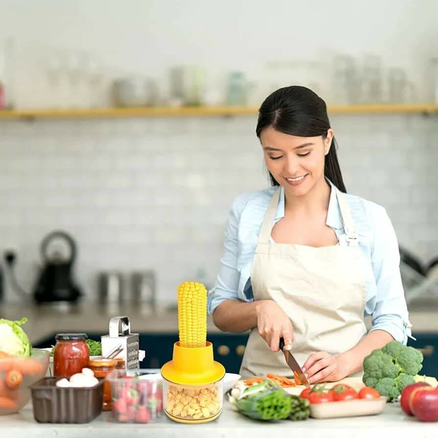 Éplucheur de maïs, éplucheur de maïs multifonction 4 en 1, outil de décapage de maïs en acier inoxydable, coupe-maïs avec bol et couvercle de broyage