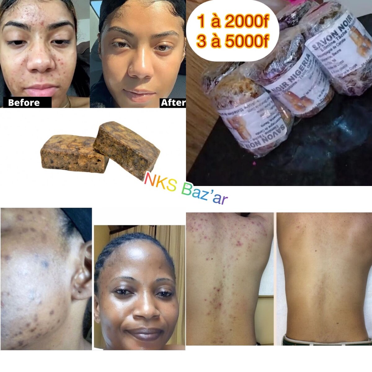 Vous voulez embellir votre peau pour un mariage ou traiter juste les imperfections ? Testez ce savon noir du Nigeria. Il traite efficacement les taches, boutons et gales pour un teint plus propre et uniforme 1 à 2000f 3 à 5000f
